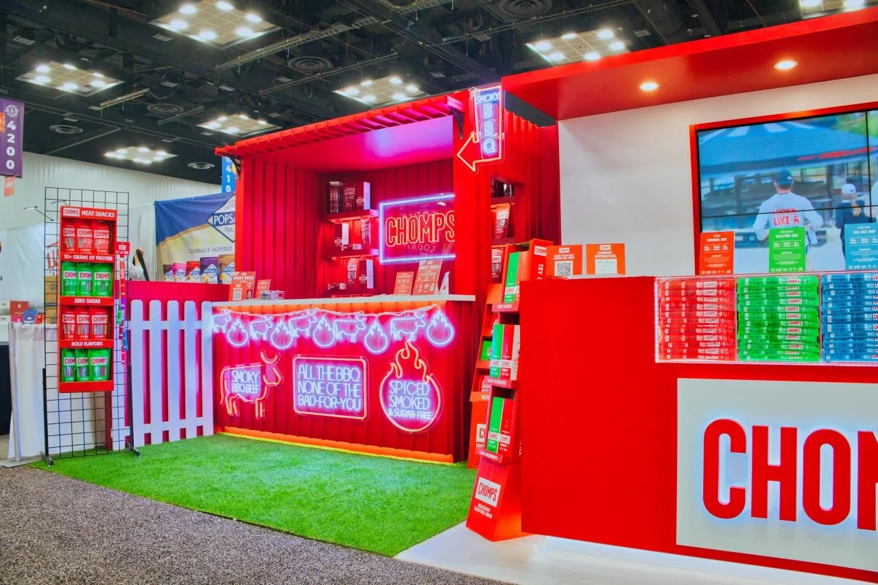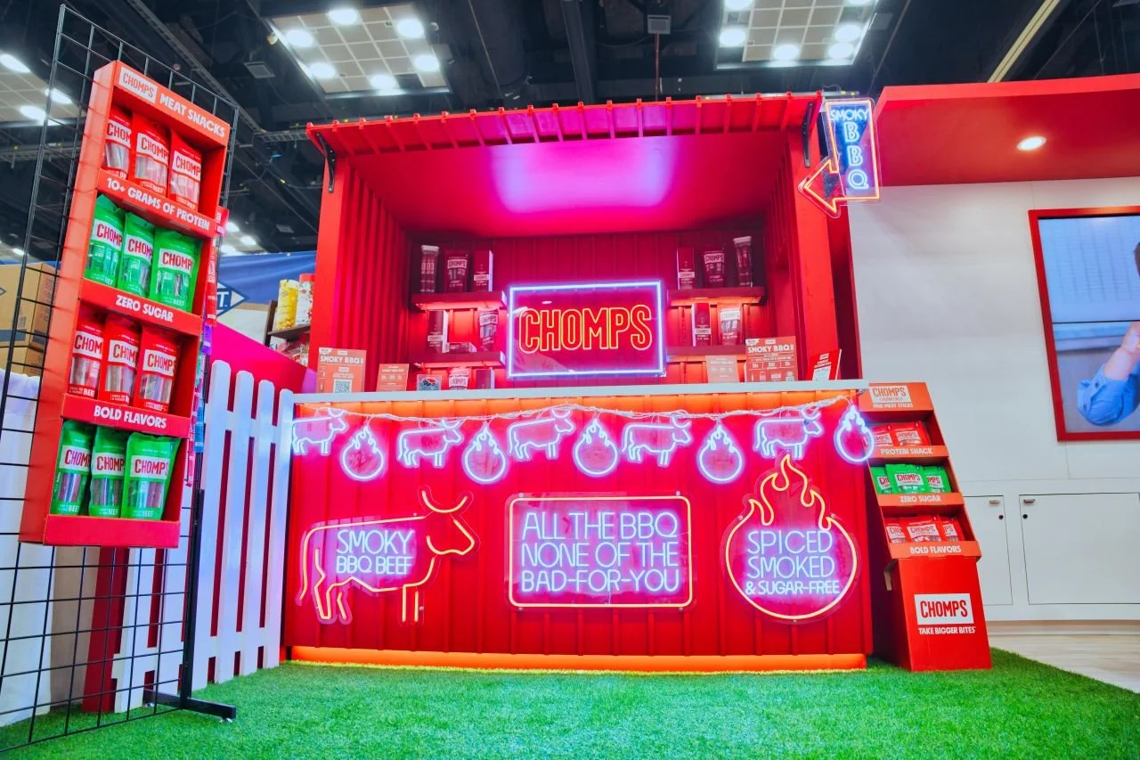 The Chomps Creative Team also concepted and executed a Smoky BBQ area within the Chomps’ Expo West 2024 booth. The “Smoky House” was a maroon shipper container featuring a variety of custom neons the team created that captured the vibes of a BBQ restaurant.
